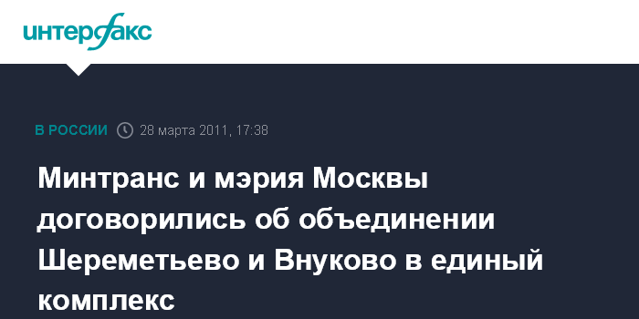 Минтранс и мэрия Москвы договорились об объединении Шереметьево и Внуково в единый комплекс