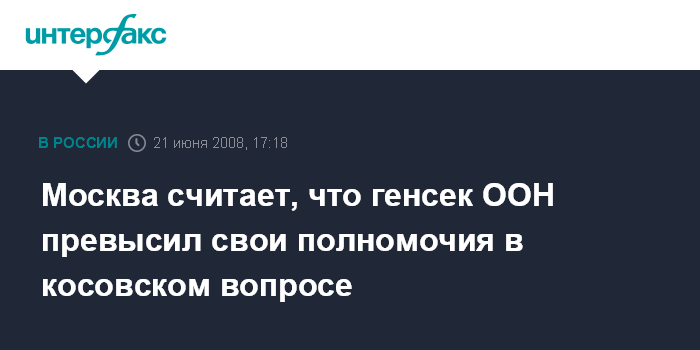Москва считает, что генсек ООН превысил свои полномочия в косовском вопросе