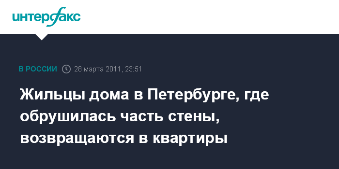 Жильцы дома в Петербурге, где обрушилась часть стены, возвращаются в квартиры