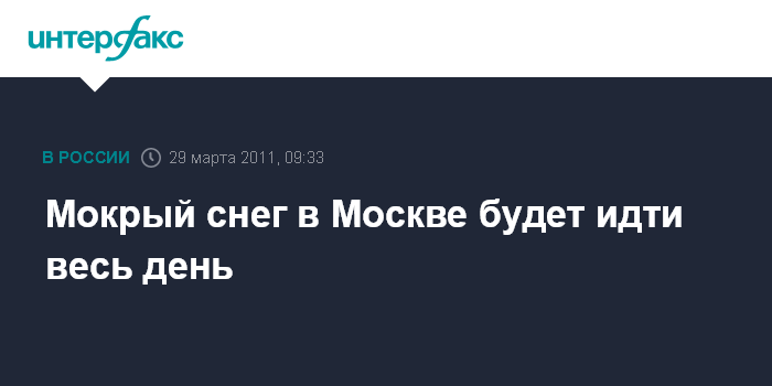 Москва. 29 марта. INTERFAX.RU - Столичные синоптики прогнозируют, что осадки в виде мокрого снега с дождем будут идти в Москве весь вторник.