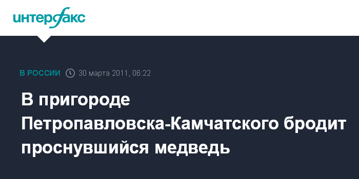 Петропавловск-Камчатский. 30 марта. ИНТЕРФАКС-ДАЛЬНИЙ ВОСТОК - Медведь, вышедший из зимней спячки, объявился в пригороде Петропавловска-Камчатского в среду.