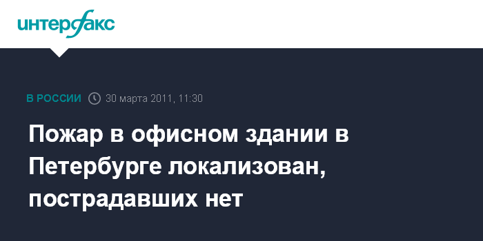 Санкт-Петербург. 30 марта. INTERFAX.RU - Пожарным удалось локализовать возгорание в офисном здании в Кировском районе Петербурга, сообщает пресс-служба Главного управления МЧС по городу в среду.