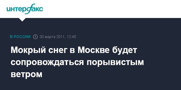 Москва. 30 марта. INTERFAX.RU - Снегопад в Москве, который начнется в ближайшие часы в Москве, будет сопровождаться сильными порывами ветра, сообщили "Интерфаксу" в Гидрометеобюро Москвы и Московской области.