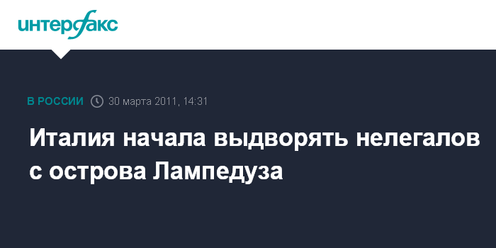 Рим. 30 марта. INTERFAX.RU - Два корабля прибыли в среду на итальянский остров Лампедуза для того, чтобы начать возвращать на родину 6 тыс. нелегалов, в основном тунисцев.