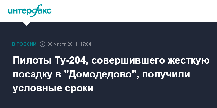 Пилоты Ту-204, совершившего жесткую посадку в "Домодедово", получили условные сроки