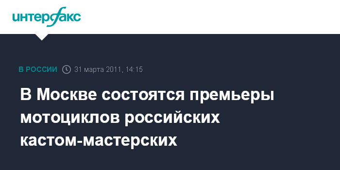 Москва. 31 марта. INTERFAX.RU – С 1 по 3 апреля в Москве в "Крокус Экспо" стартует 8-я Международная выставка "Мото Парк 2011", объединяющая профессионалов и любителей мототехники России, СНГ и дальнего зарубежья.