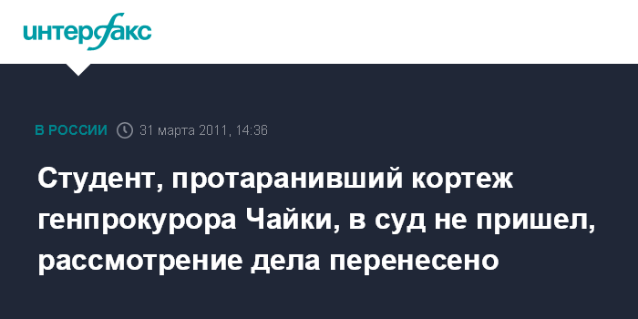 Студент, протаранивший кортеж генпрокурора Чайки, в суд не пришел, рассмотрение дела перенесено