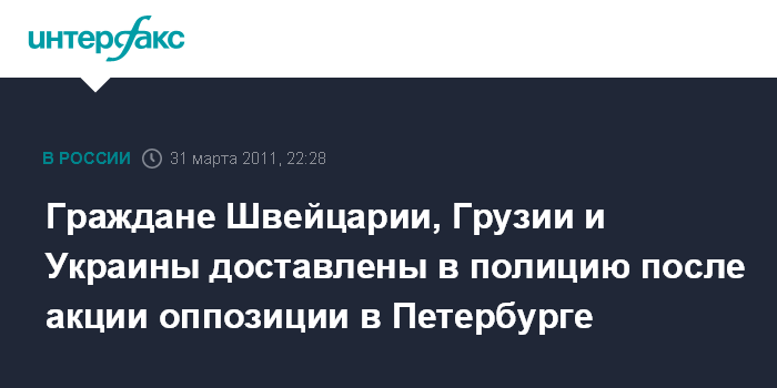 Санкт-Петербург. 31 марта. ИНТЕРФАКС-СЕВЕРО-ЗАПАД - Сотрудники правоохранительных органов доставили нескольких иностранных граждан в отделение внутренних дел после несанкционированных акций, прошедших в Петербурге в четверг вечером, сообщили "Интерфаксу" в городском ГУВД.