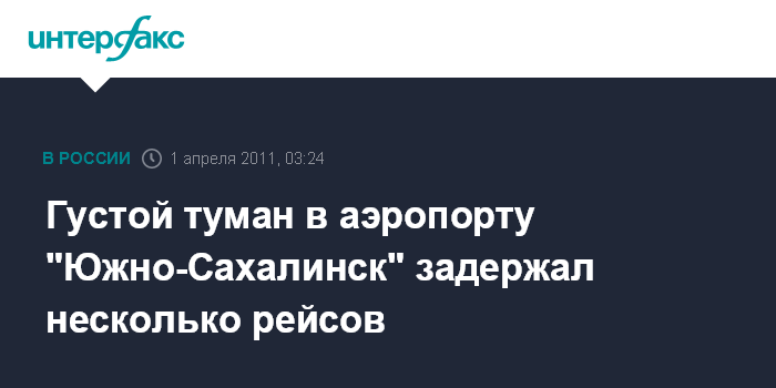 Южно-Сахалинск. 1 апреля. ИНТЕРФАКС-ДАЛЬНИЙ ВОСТОК – В аэропорту "Южно-Сахалинск" из-за сильного тумана утром в пятницу не возможно производить посадку воздушных судов.