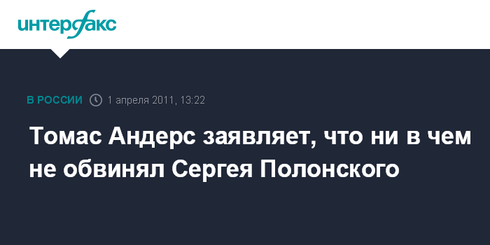 Томас Андерс заявляет, что ни в чем не обвинял Сергея Полонского