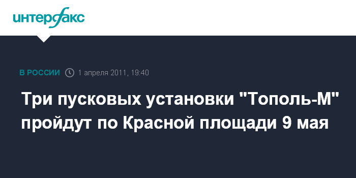 "В составе механизированной колонны парадного расчета по Красной площади, как и в прошлом году, пройдут три автономных пусковых установки подвижного грунтового ракетного комплекса "Тополь-М", - сообщил В.Коваль.