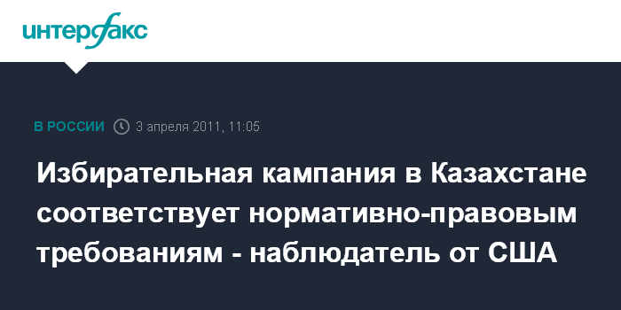 Избирательная кампания в Казахстане соответствует нормативно-правовым требованиям - наблюдатель от США