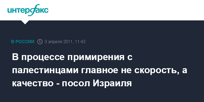 В процессе примирения с палестинцами главное не скорость, а качество - посол Израиля