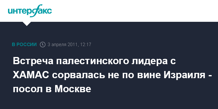 Встреча палестинского лидера с ХАМАС сорвалась не по вине Израиля - посол в Москве
