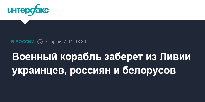 Военный корабль заберет из Ливии украинцев, россиян и белорусов
