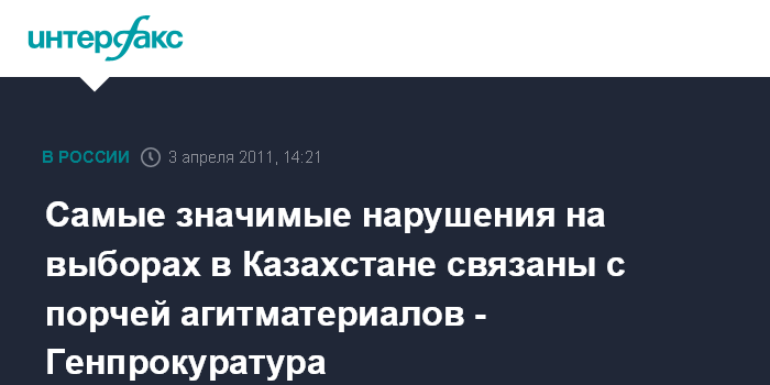 Астана. 3 апреля. INTERFAX.RU - Генеральная прокуратура Казахстана выявила ряд незначительных нарушений в ходе выборов президента страны. "Генеральная прокуратура отмечает, что настоящий избирательный процесс проходит в спокойной обстановке. Есть отдельные незначительные нарушения законности", - сообщил директор департамента по надзору за законностью в социально-экономической сфере Генпрокуратуры Андрей Кравченко в воскресенье на брифинге в Астане.