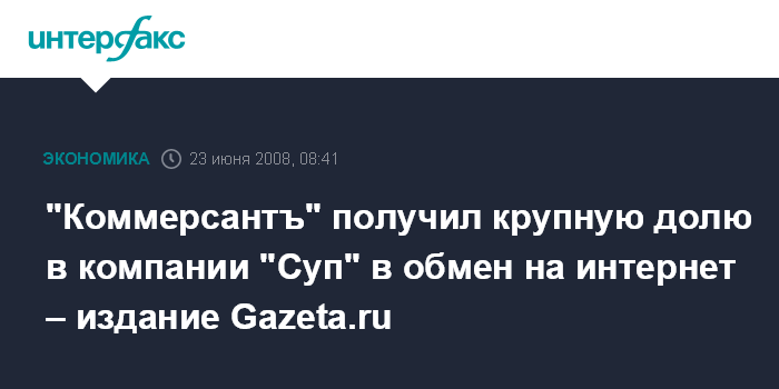 "Коммерсантъ" получил крупную долю в компании "Суп" в обмен на интернет – издание Gazeta.ru