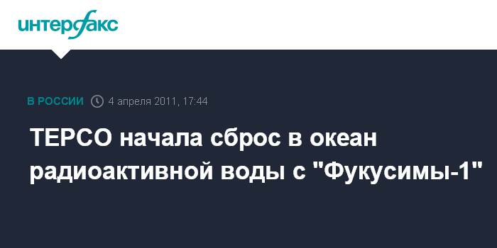 Токио. 4 апреля. INTERFAX.RU - Компания-оператор аварийной АЭС "Фукусима-1" - ТЕРСО начала сброс радиоактивной воды, скопившейся на станции, в океан, сообщают японские СМИ.