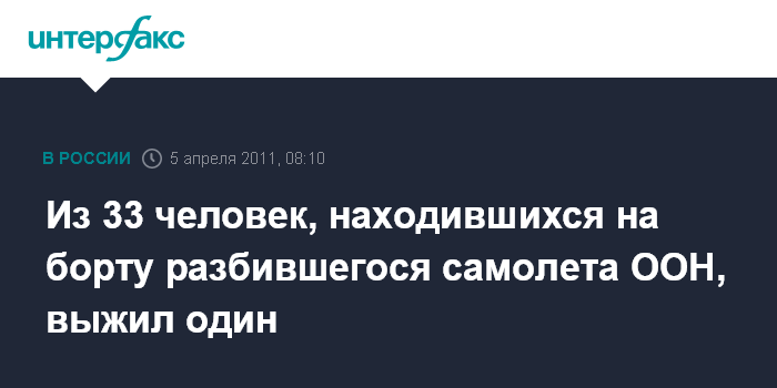 Из 33 человек, находившихся на борту разбившегося самолета ООН, выжил один