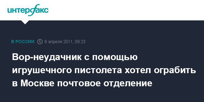 Вор-неудачник с помощью игрушечного пистолета хотел ограбить в Москве почтовое отделение