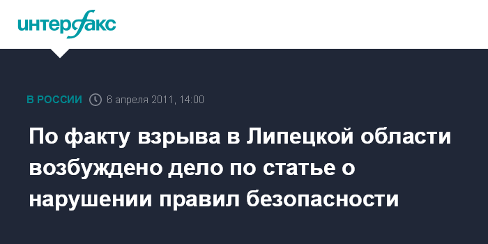 По факту взрыва в Липецкой области возбуждено дело по статье о нарушении правил безопасности