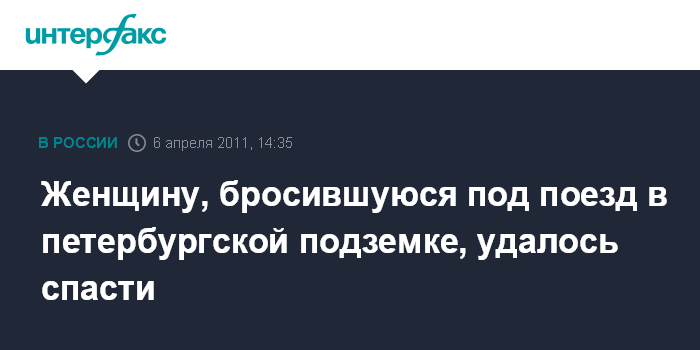 Женщину, бросившуюся под поезд в петербургской подземке, удалось спасти