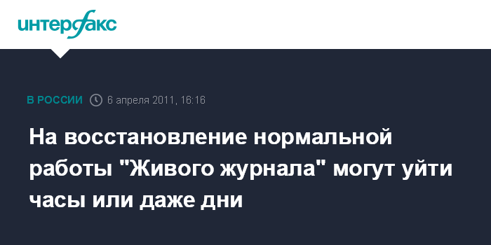 На восстановление нормальной работы "Живого журнала" могут уйти часы или даже дни
