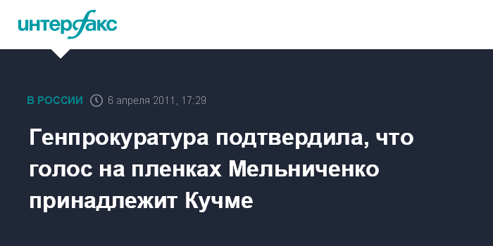 "Более качественные исследования были проведены именно осенью 2010 года. По заключению дополнительных судебно-фоноскопических экспертиз, голоса лиц, причастных к убийству Гонгадзе, зафиксированные на пленках Мельниченко, принадлежат Кучме и (бывшему главе МВД) Кравченко Мы подтвердили отсутствие монтажа, в том числе. По этой причине пленки были положены в основу обвинения Кучмы", - заявил первый заместитель генерального прокурора Украины Ренат Кузьмин в интервью еженедельнику "Фокус", выдержки из которого опубликованы на сайте издания в среду.