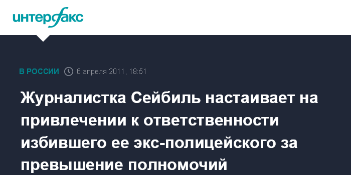 Журналистка Сейбиль настаивает на привлечении к ответственности избившего ее экс-полицейского за превышение полномочий