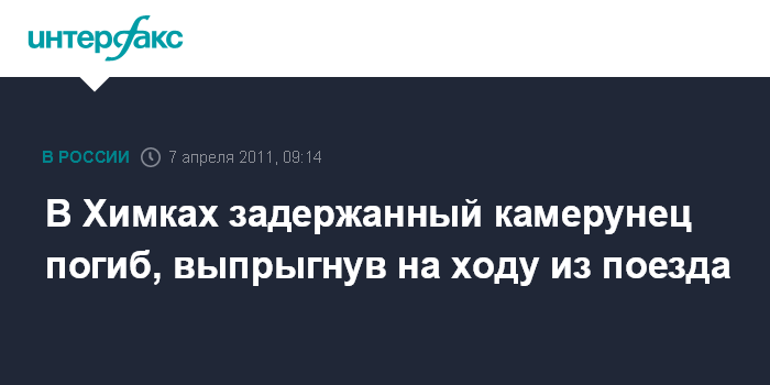 Москва. 7 апреля. INTERFAX.RU - Гражданин Камеруна, которого должны были выдворить из России, пытался сбежать из поезда на ходу, но погиб, сообщил "Интерфаксу" источник в правоохранительных органах в четверг.