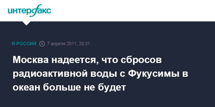 Москва надеется, что сбросов радиоактивной воды с Фукусимы в океан больше не будет