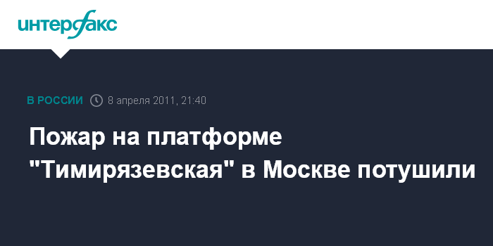 Москва. 8 апреля. INTERFAX.RU - Ликвидирован пожар на платформе Тимирязевская Московской железной дороги (МЖД), сообщил "Интерфаксу" начальник пресс-службы ГУ МЧС по Москве Евгений Бобылев.