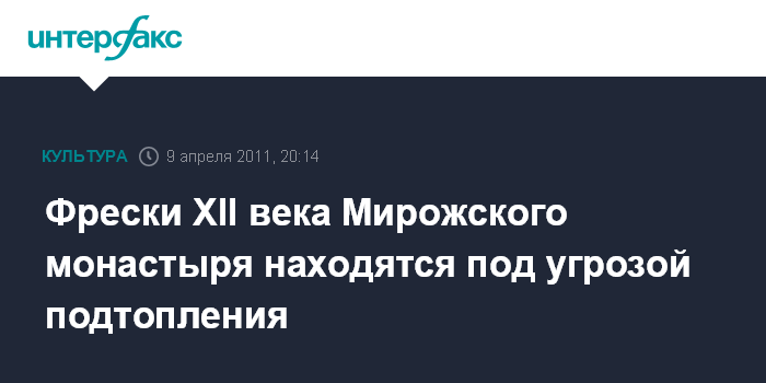 Фрески XII века Мирожского монастыря находятся под угрозой подтопления