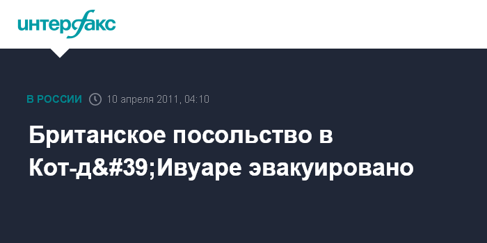Лондон. 10 апреля. ИНТЕРФАКС - Решение об эвакуации сотрудников британской дипмиссии в Абиджане (Кот-д'Ивуар) было принято после того, как здание оказалось в зоне боев между войсками двух соперников в борьбе за президентское кресло.