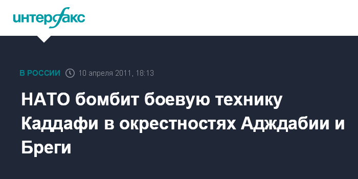 Брюссель. 10 апреля. INTERFAX.RU - Натовская авиация сосредоточила удары на окрестностях ливийских городов Адждабия и Мисрата, осажденных силами Каддафи. Как сообщается в воскресной сводке военного командования НАТО, там уничтожено 25 танков. "Ситуация в Адждабии и особенно Мисрате складывается трагически для тех ливийцев, которые находятся под жестоким обстрелом артиллерии режима. Помогая защитить мирных жителей, мы продолжаем наносить удары по силам режима, уничтожив сегодня 11 танков, приближавшихся к Адждабии, и 14 танков ранее утром в окресностях Мисрата", - отметил командующий операцией генерал-лейтенант Шарль Бушар.