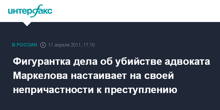 Фигурантка дела об убийстве адвоката Маркелова настаивает на своей непричастности к преступлению