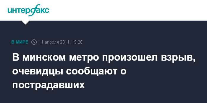 Минск. 11 апреля. INTERFAX.RU - На станции метро "Октябрьская" минского метрополитена прогремел взрыв.