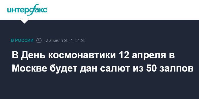 В ознаменование Дня космонавтики и 50-й годовщины первого полета человека в космос президент постановил: "Произвести 12 апреля 2011 г. в 22 часа салют из 50 залпов в столице Российской Федерации г. Москве".