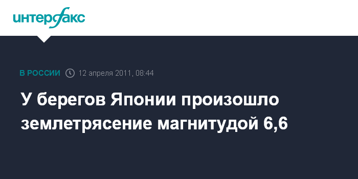 Лондон. 12 апреля. INTERFAX.RU - Землетрясение магнитудой 6,6 произошло у берегов японского острова Хонсю, сообщает Геологическая служба США.
