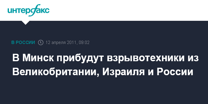 Лондон. 12 апреля. INTERFAX.RU - Специалисты по взрывотехнике из Великобритании и Израиля и России прибудут в белорусскую столицу во вторник, чтобы помочь в расследовании в метрополитене Минска.