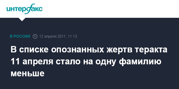 В списке опознанных жертв теракта 11 апреля стало на одну фамилию меньше