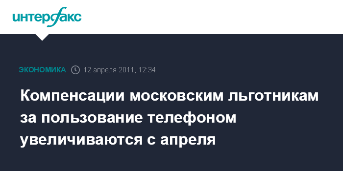 Москва. 12 апреля. INTERFAX.RU - Московские власти с апреля увеличивают размер компенсации за пользование льготниками услугами местной телефонной связи.