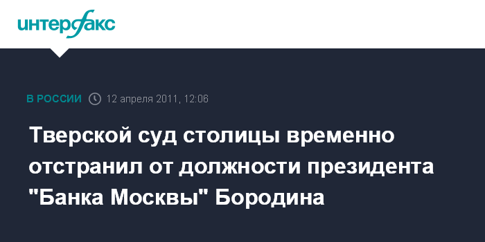 Тверской суд столицы временно отстранил от должности президента "Банка Москвы" Бородина