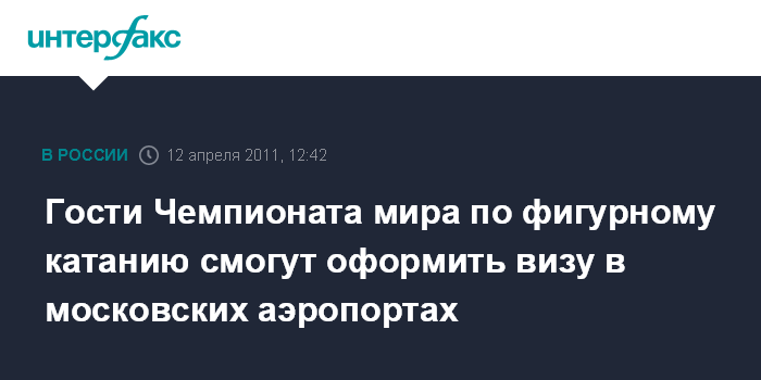 Москва. 12 апреля. ИНТЕРФАКС - Все участники и гости Чемпионата мира по фигурному катанию на коньках 2011 года, прибывающие в РФ из других стран авиационным транспортом и нуждающиеся в оформлении российской визы, смогут получить ее уже в Москве.
