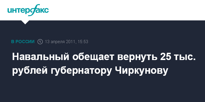 Навальный обещает вернуть 25 тыс. рублей губернатору Чиркунову