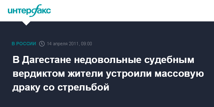 Махачкала. 14 апреля. INTERFAX.RU - В массовой драке с применением огнестрельного оружия в Дагестане погибли двое и были ранены пять человек, возбуждено уголовное дело, сообщил "Интерфаксу" старший помощник руководителя СУ СКР по Дагестану Алхас Амирханов.