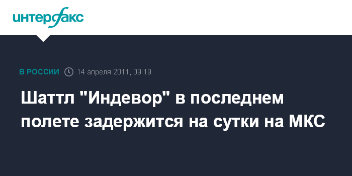 Вашингтон. 14 апреля. INTERFAX.RU - Национальное аэрокосмическое агентство США в среду приняло решение продлить на сутки предстоящий в апреле-мае полет пилотируемого корабля многоразового использования "Индевор".