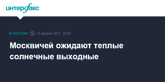 Москва. 14 апреля. INTERFAX.RU - В ближайшие субботу и воскресенье погода порадует москвичей солнцем и теплом, а также отсутствием серьезных осадков, заявляет генеральный директор Гидрометеобюро Москвы и Московской области Алексей Ляхов.