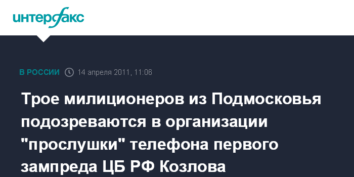 Трое милиционеров из Подмосковья подозреваются в организации "прослушки" телефона первого зампреда ЦБ РФ Козлова