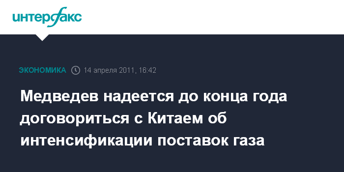 Медведев надеется до конца года договориться с Китаем об интенсификации поставок газа